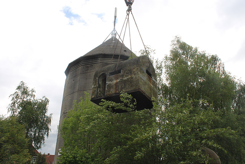 Die Umbettung des Unterstandes wurde am 29.08.05 vollzogen. Auf dem Luftschutzturmgrundstück Norderneystraße / Minsener Oog 1A hat er nun einen Platz als einzigartiges Relikt gefunden.