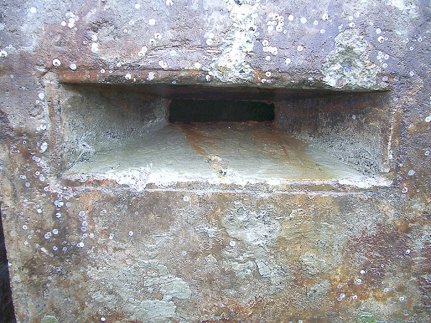 Der Splitterschutzunterstand wurde in Folge der Demilitarisierungsmaßnahmen Ende der 1940er Jahre am Uferbereich versenkt.