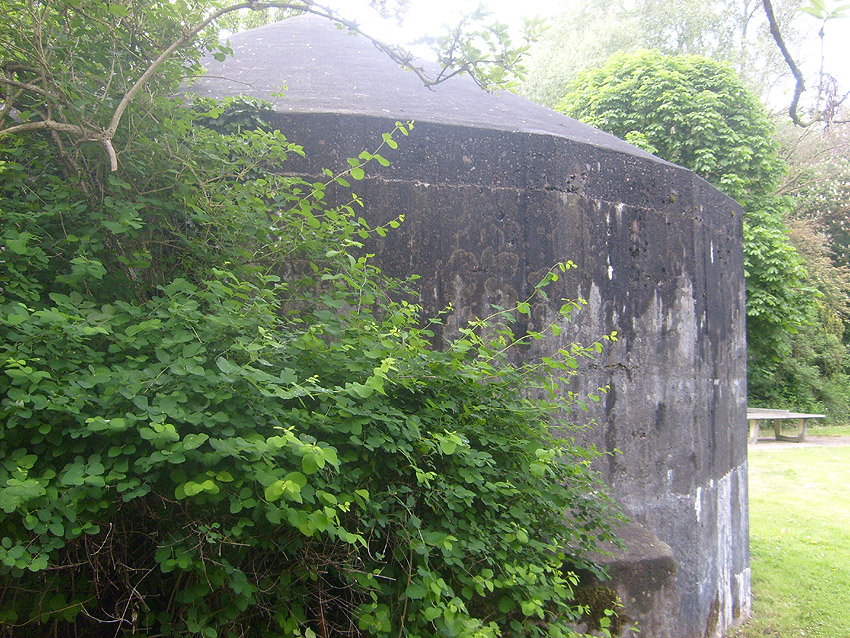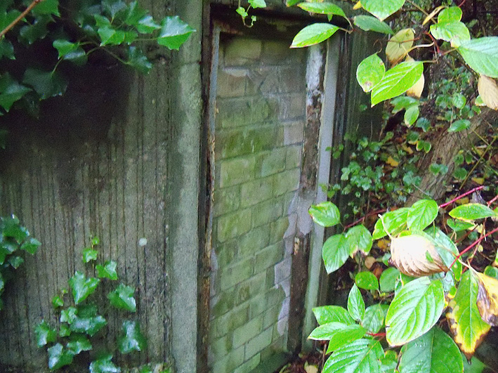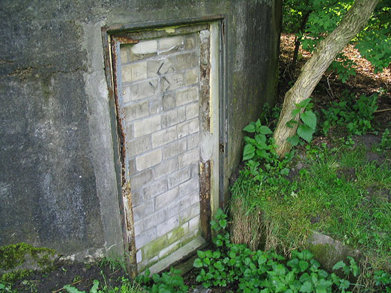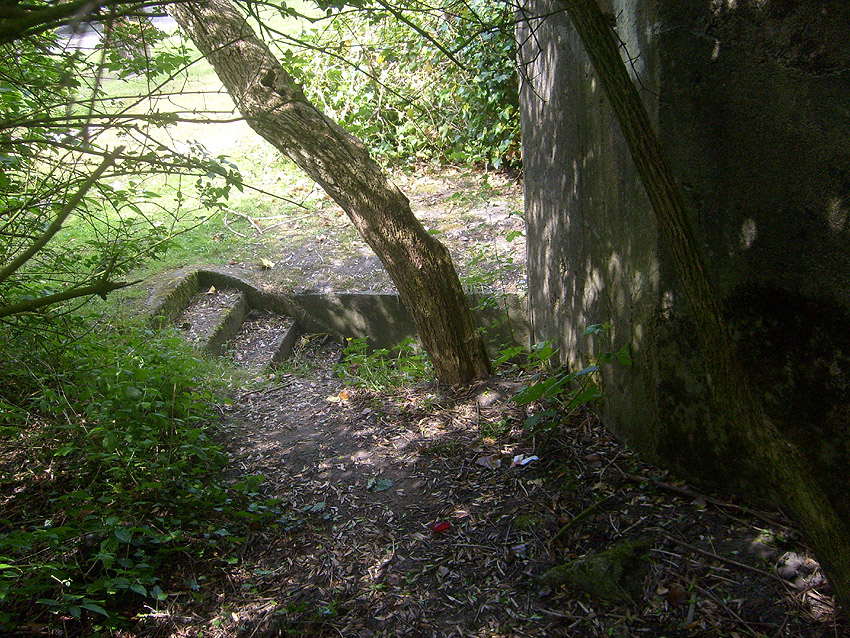 Dies muss der Notausstieg gewesen sein. Er scheint nach dem Krieg verschlossen worden zu sein. Es kann auch sein, dass der gesamte Betonblock nachträglich vor den Ausstieg gegossen wurde.
