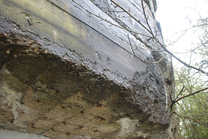 Dieser Turm besaß keine Sichtscharten in der obersten Ebene. Hier zu sehen sind lediglich Lüftungsschächte. Beobachtungsstände mit Sichtscharten waren immer Schwachpunkte im Falle eines Treffers. Da der unmittelbar neben diesem gelegene andere Luftschutzturm über vier große Sichtscharten für einen Rundumblick verfügte, waren diese hier überflüssig und nicht notwendig.