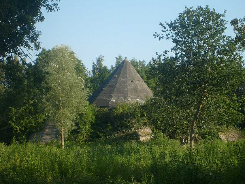 Von diesem Turm ist im Kuppelbereich lediglich Ebene 8 zur Hälfte erhalten / Geschossreste von Ebene 7, 6 und 1 (Erdgeschoss) existieren teilweise (im Gegensatz zur Skizze waren keine Sichtscharten in der Kuppel vorhanden!)...