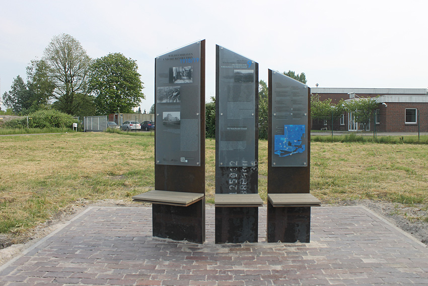 17. November 2018: Am 10.11.18 wurde nun das Denkmal zum 100jährigen Ende des Ersten Weltkrieges ("Denkmal für die Revolutionäre") unmittelbar westlich am Deckungsgraben Grodenschule Nord enthüllt.