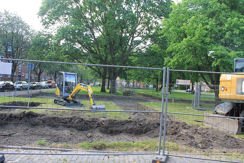 Im Sommer 2017 fanden hier auf dem Gelände Erdarbeiten statt (für die südliche Erweiterung des dortigen Spielplatzes). Der gleiche Eindruck herrschte allerdings auch im Zweiten Weltkrieg beim Aushubbeginn für Zickzack-Deckungsgräben im frühen Baustadium...