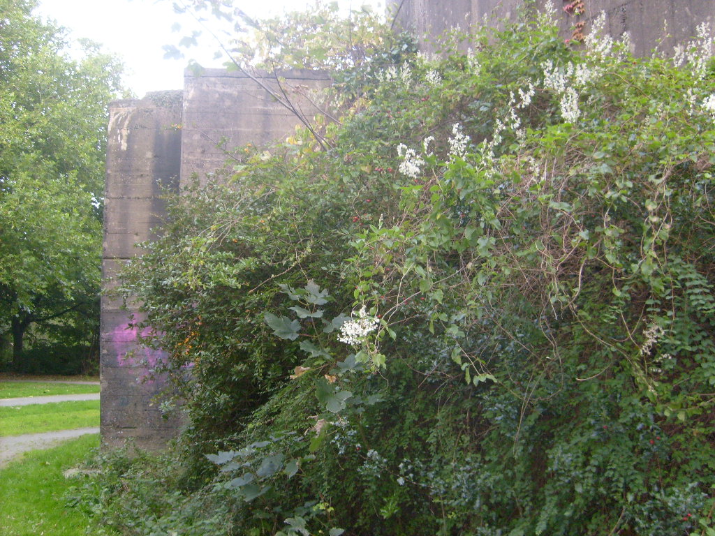 Nur die Außenhülle des Turmes ist intakt, er wurde von innen gesprengt. Alle vier Eingänge der Splitterschutzvorbauten sind vermauert.