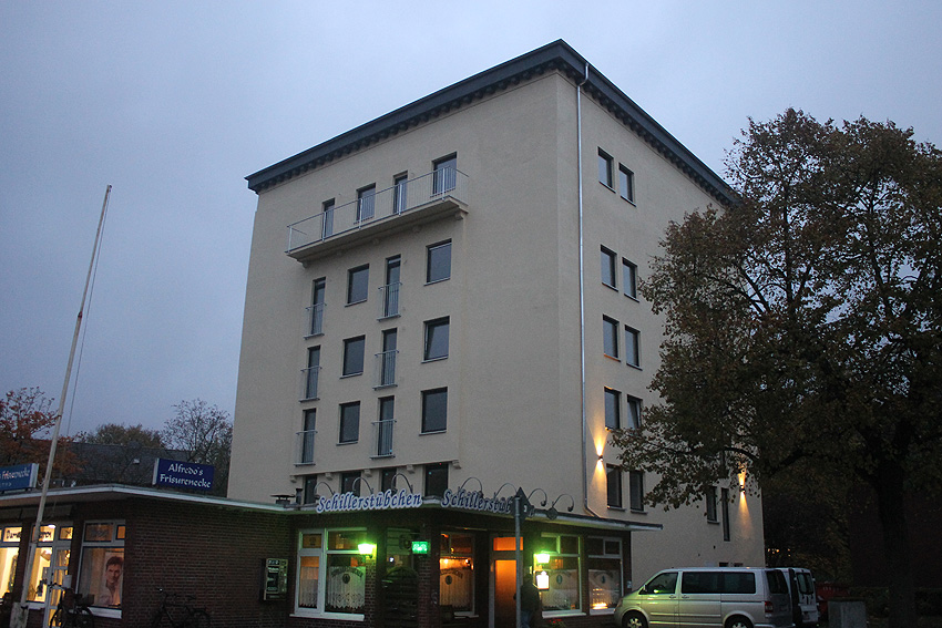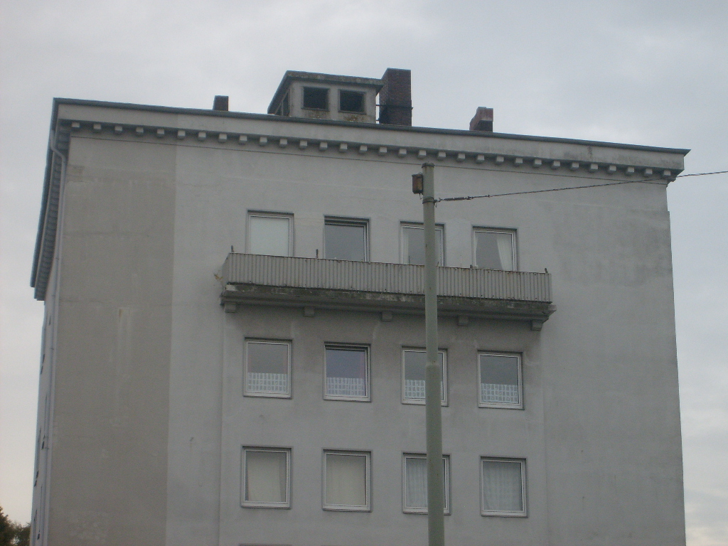Dieser LS-Turm besaß genau entgegengesetzt der hier sichtbaren Seite einen am Dachbereich angesetzten Lüftungsturmanbau, ähnlich dem des Gorch-Fock-Luftschutzturmes, wie beschrieben baugleich zu dem des Bunkers Kantstraße und ähnlich denen der bekannten 10er (bzw.15er) Luftschutzturmreihe Wilhelmshavens. Interessant ist auch der noch heute vorhandene aufgesetzte Beobachtungsstand (mit relativ großen Sichtfenstern statt den üblichen Sichtscharten) und der verzierte Simsbereich, wie erwähnt baugleich zu dem des Bunkers Kantstraße. Nur fehlen hier im Gegensatz zur Kantstraße die eingelassenen Quadrate unter dem Sims.