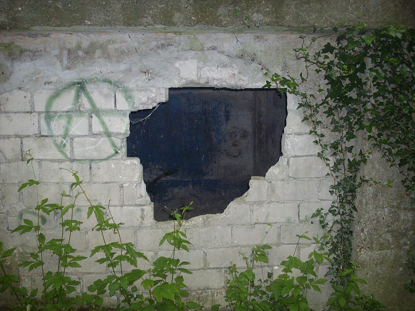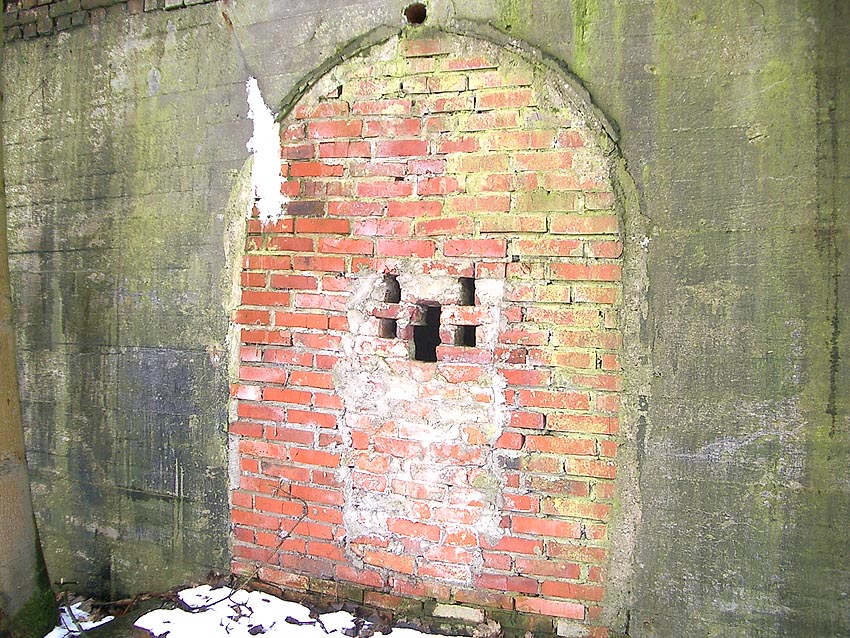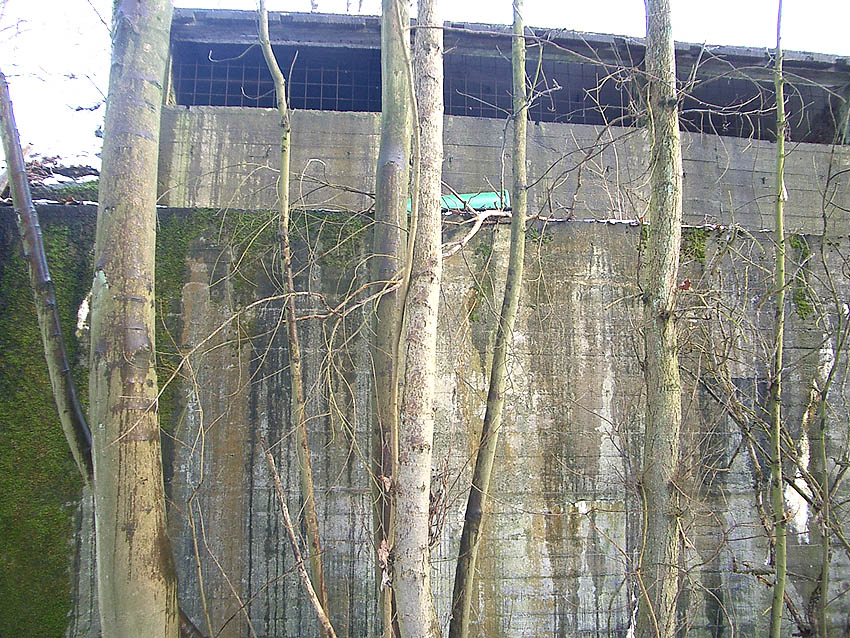 Der gesprengte Bereich an der Westfassade. Hier befand sich ursprünglich ein Anbau mit Beobachterturm und leichter Flakstellung...