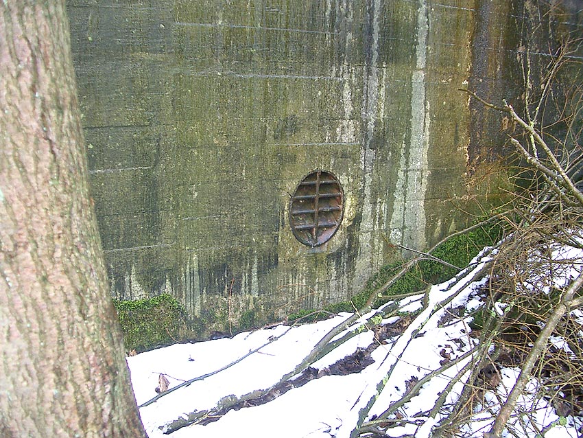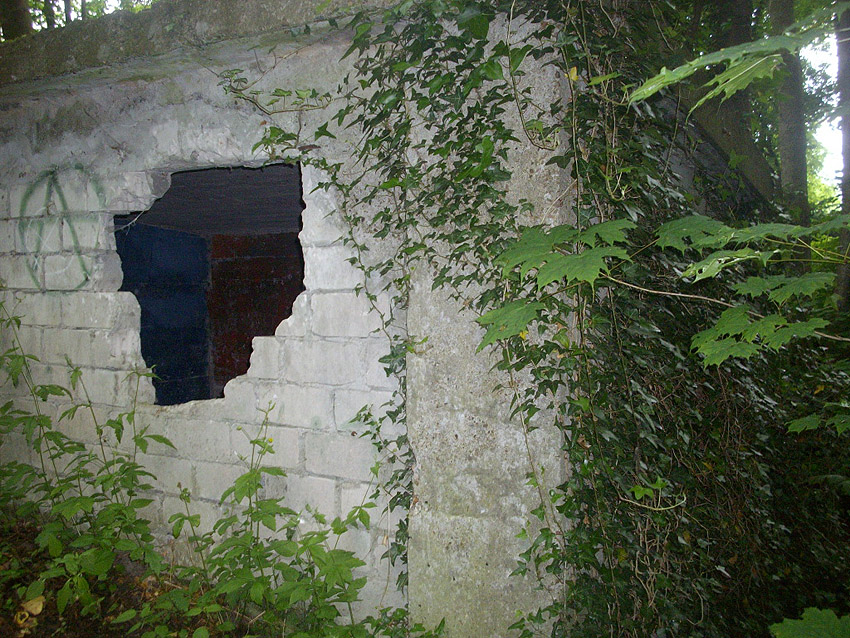 Drei alte Kanalschächte und eine teilzerstörte splittergeschützte Beton-Munitionslagerkiste im Nahbereich der ehemaligen Luftverteidigungszentrale: