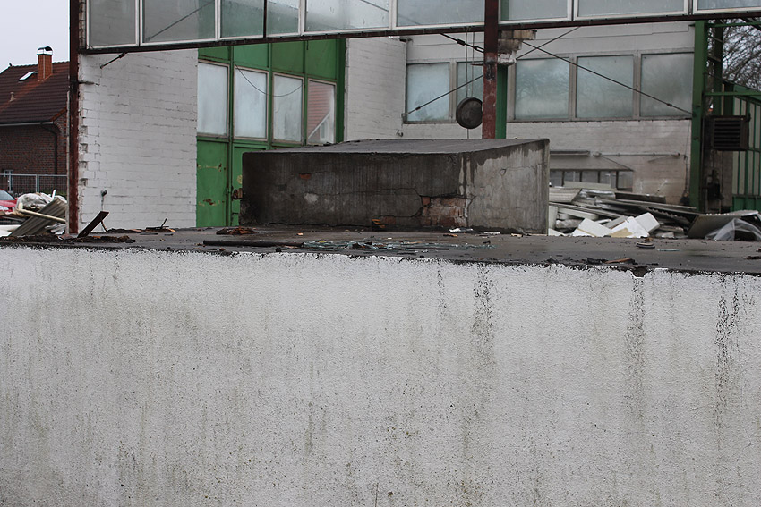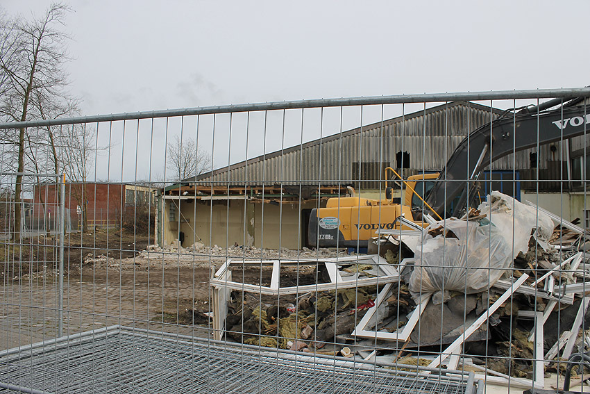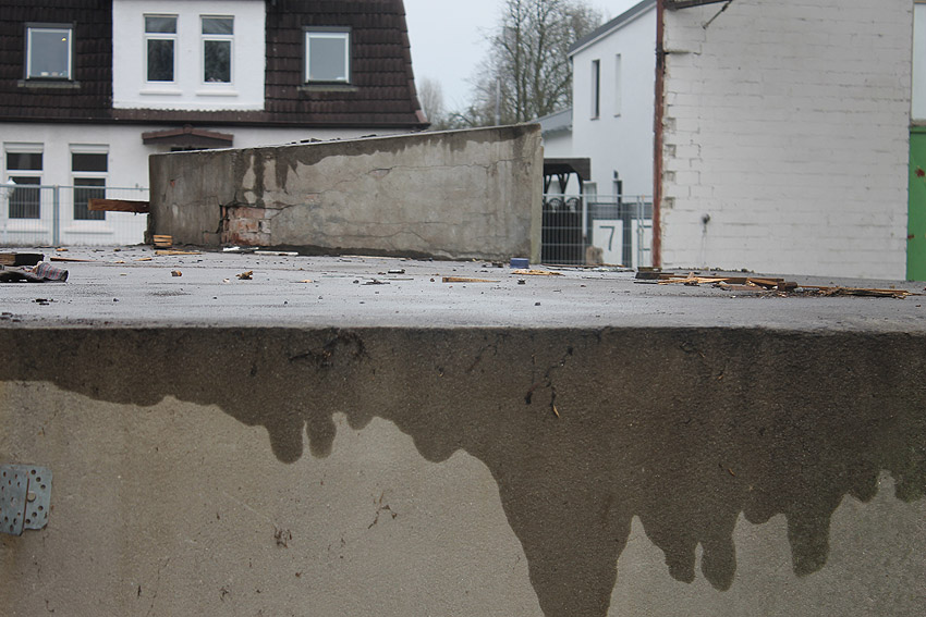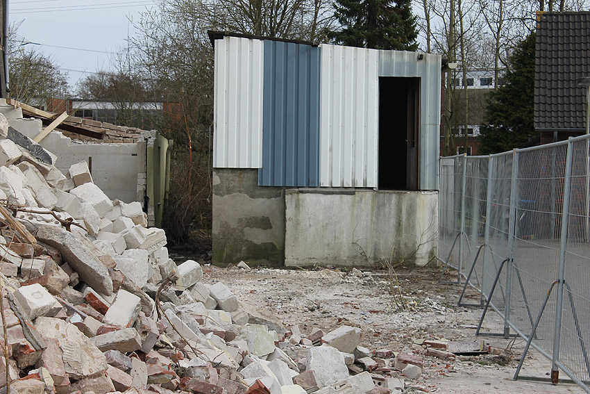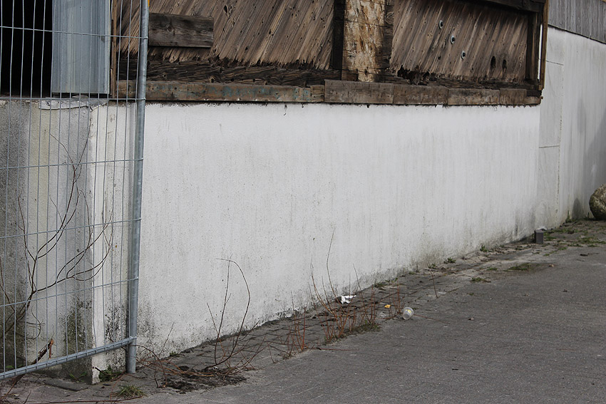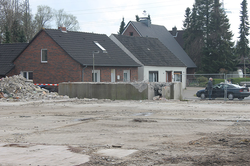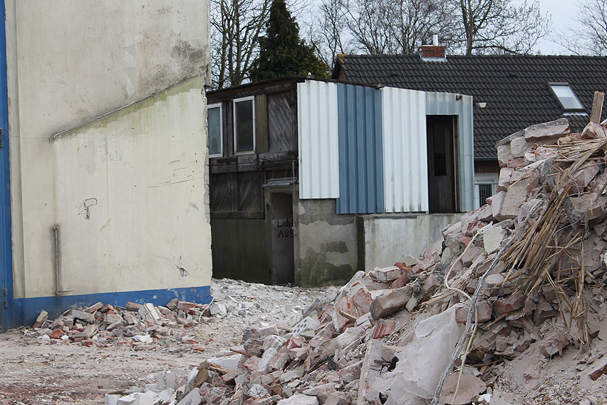 Wider Erwarten heute keine weitere Abrisstätigkeit. Der Schutzbau ist übrigens bauartgleich zum 2006 abgerissenen Zwilling in Rüstersiel bei "Blumen Fass" ausgeführt worden...