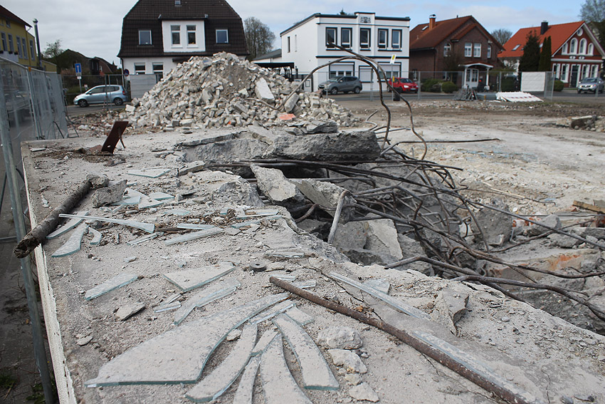 Der Abriss ist weiter fortgeführt worden. Entweder heute, oder am gestrigen 19. April... Die Decke des Bauwerkes ist fast zerstört.