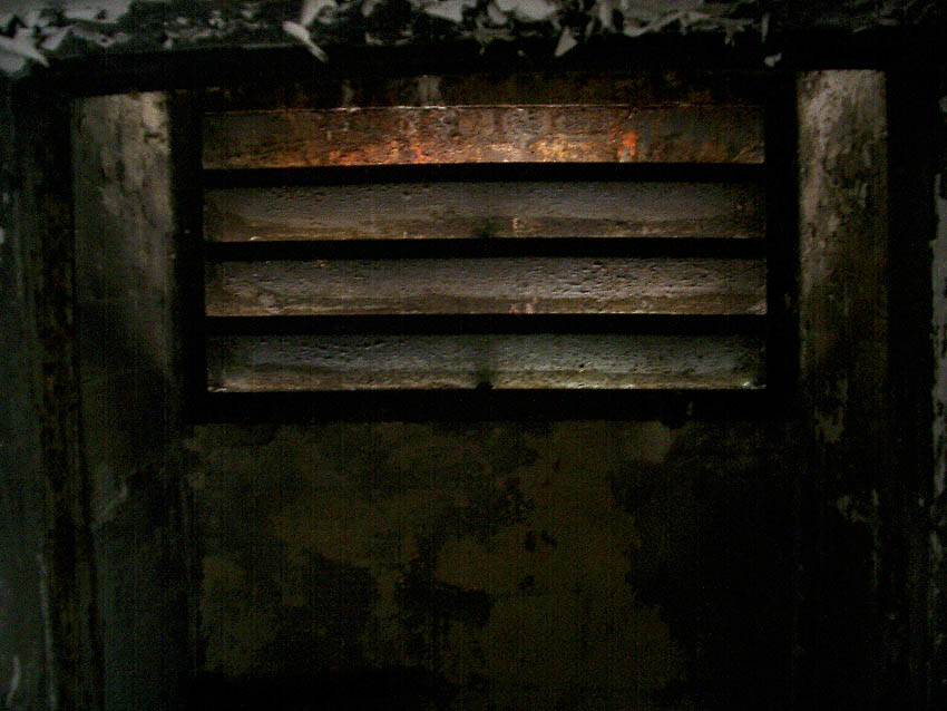 In den Notausgangsbereich wurde nachträglich diese Lüftung eingebaut. In diesem kleinen Raum in der Wand befindet sich ein Rahmen, welcher noch original sein könnte. Sinn und Zweck sind uns unbekannt. Er wird jedoch etwas mit einer eventuellen Notausgangsluke zu tun gehabt haben...