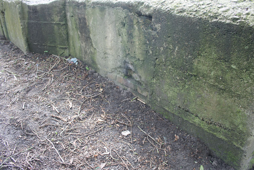 Der Beton der Kuppel wurde mit einem Spaten festgeklopft. Der Bunker ist in Eigenbau entstanden. Die Betongüte und die Schalung sind als eher dürftig zu bezeichnen. Es kam bei diesem Bauwerk nur noch auf die schnelle Schaffung eines Schutzraumes an.