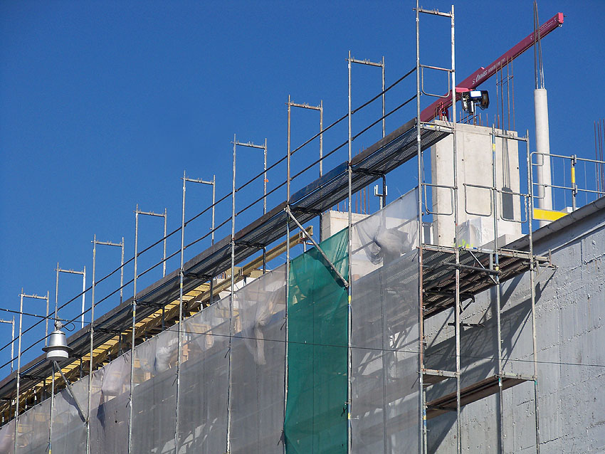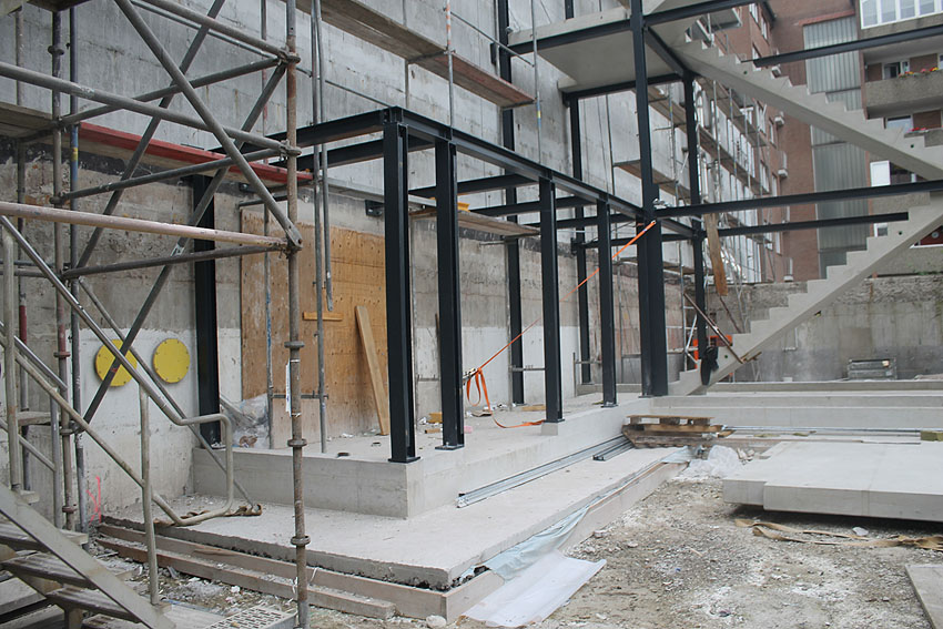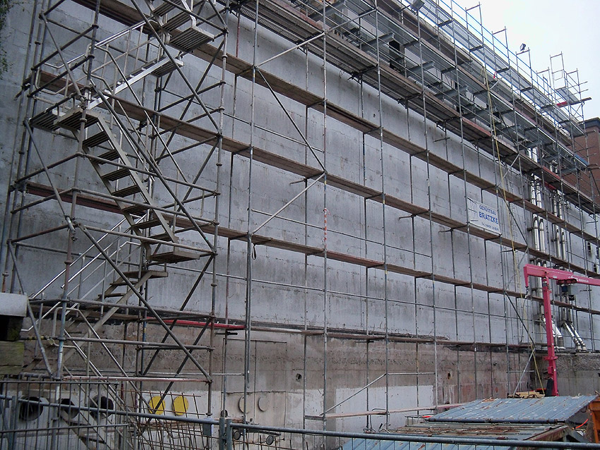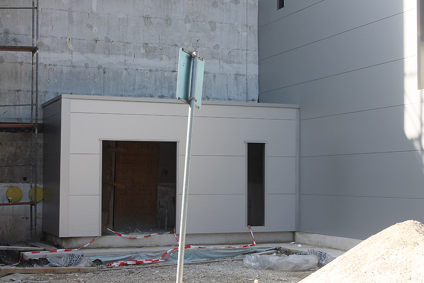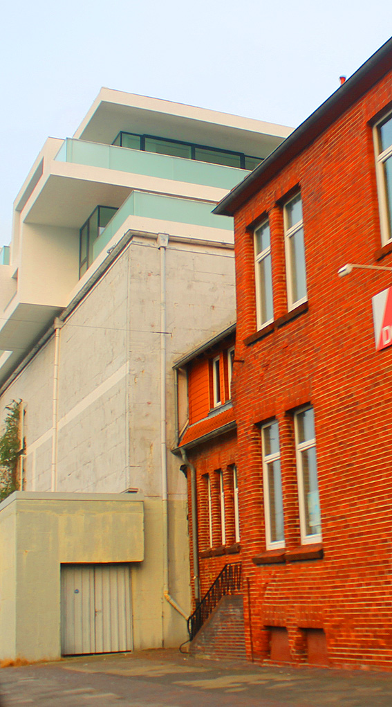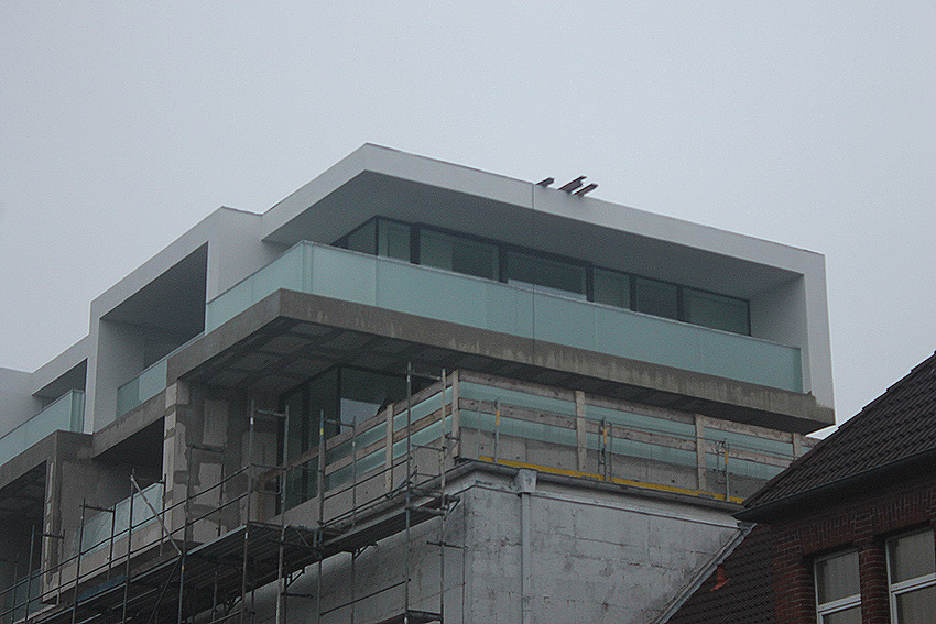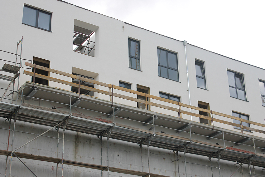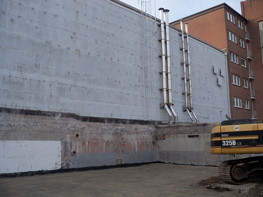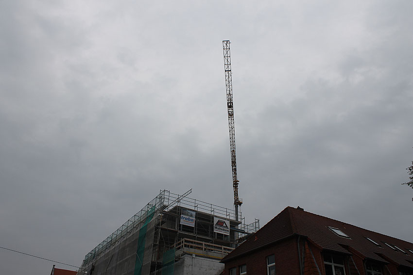 Am ehemaligen OP-Bunker Virchowstraße wird nun an der rückwärtigen Ostwand der Treppenhaus- und Fahrstuhlanbau für die aufgebauten Wohnungen errichtet. Wo genau der Fahrstuhl installiert wird, ist uns allerdings noch etwas unklar. Die Arbeiten gehen stetig weiter ihrer Vollendung entgegen.