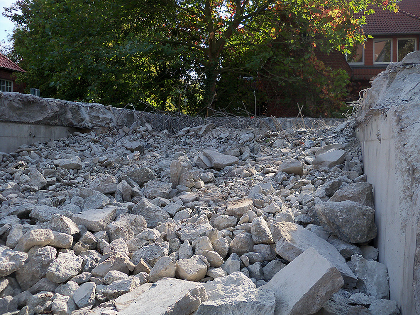 Der Schutt ist entfernt. Die Abrissarbeiten sind abgeschlossen. Zugänge in den Bunker und den Vorbau wurden vermauert. Wenn es hier weiter geht, sind wir wieder vor Ort.