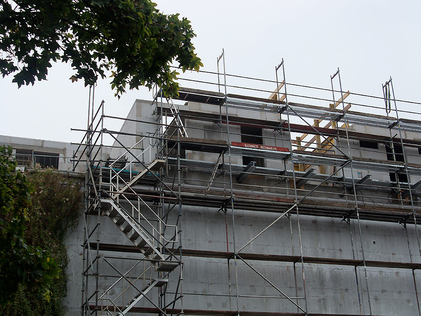 So sieht es heute am Bunker aus. Einige Wände stehen bereits auf dem Dach.