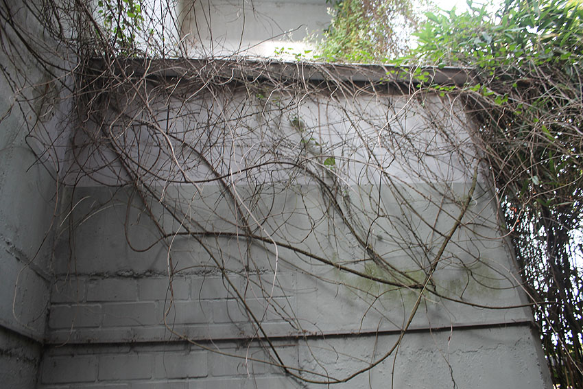 Der ursprüngliche Anbau wurde seinerzeit abgebrochen. Auf dem historischen Bild an der gesamten Bunkerwand außerdem zu sehen wenige Reste der rotfarbenen Tarnung: