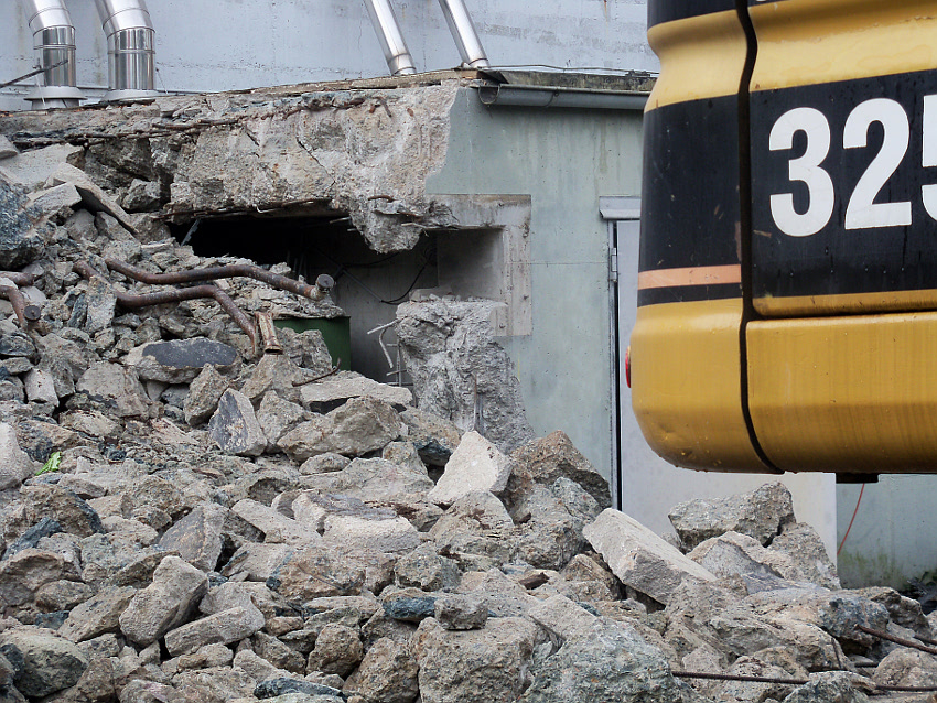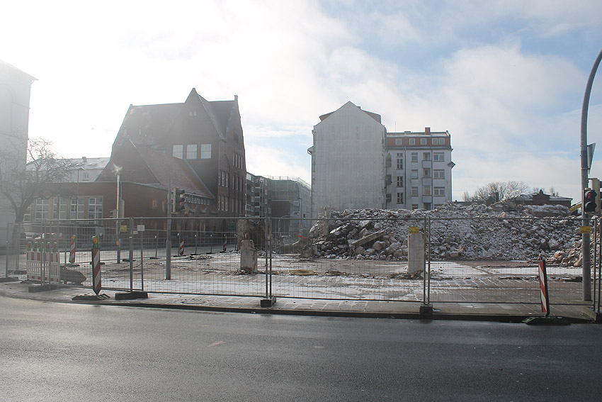 Der Trümmerschutt wurde großteilig entfernt. Die restlichen Außenwandreste des ehemaligen Vorbaubereiches Mitte / Süd wurden fast vollständig abgetragen. Wir berichten weiter.