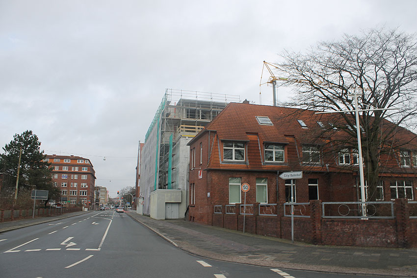 Am Hochbunker Virchowstraße sieht die Szenerie von Nordwesten heute derart aus. Wann dort die Fertigstellung des Überbaues erfolgt, ist noch immer unklar.
