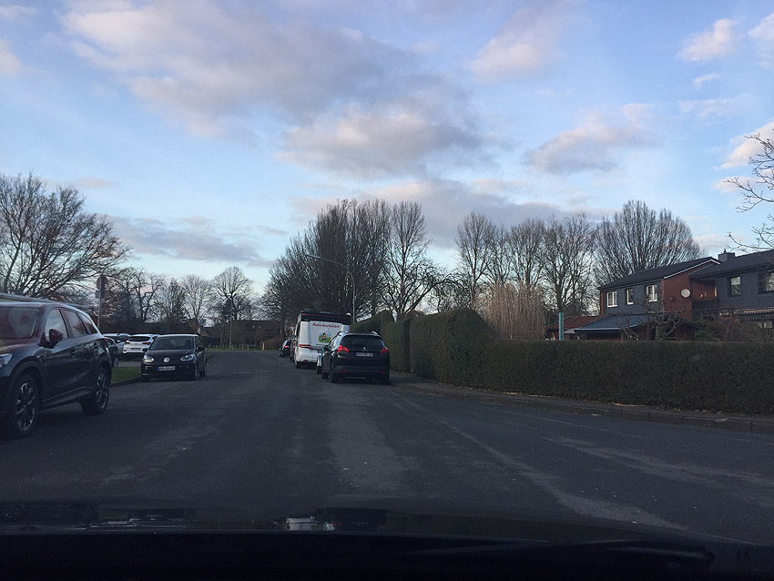 Hier war die östliche Lagerbegrenzung / die LS-Anlage befand sich links der Straße (Emil-Lueken-Straße) im Bereich der heutigen Wohnhäuser: