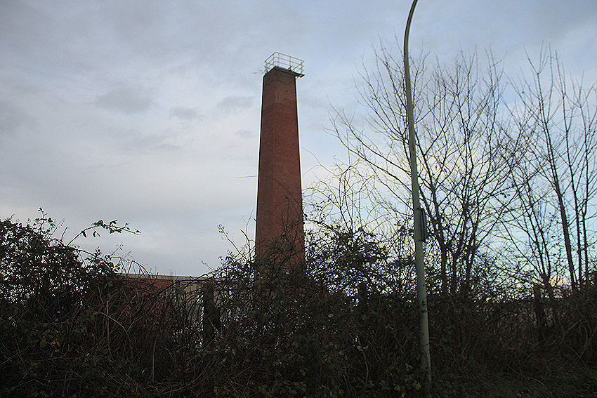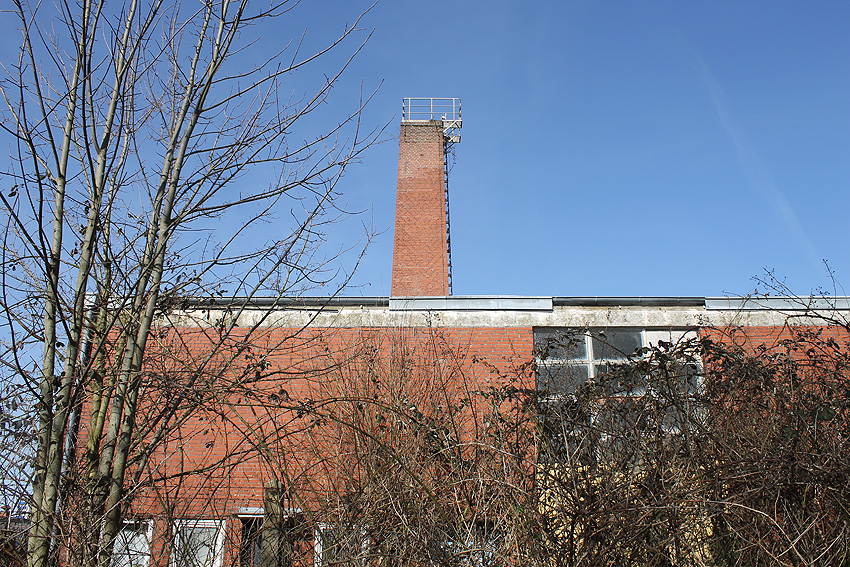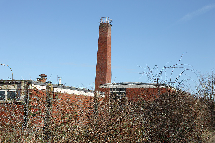 Der nahe am Bunker befindliche charakteristische Schornstein des ehemaligen Heizwerkes ist gestern gefallen.