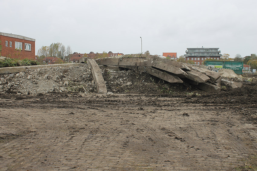 Im Bereich der Wiesbadenbrücke ist nun nach dem Abbruch des bis zuletzt verbliebenen Anliegergebäudes lediglich der Tiefbunker als letzte massive Gebäudestruktur noch existent. Mit seinem Abriss ist alsbald im Januar 2018 zu rechnen.