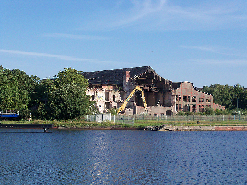 Südzentrale: Heute fand um 18 Uhr genau gegenüber der Südzentralenreste am Hafen nahe der Mölders am Marinemuseum eine Abschiedsveranstaltung vom Verein zum Erhalt der Südzentrale statt. Es herrschte große Betroffenheit unter den zahlreichen Anwesenden. Aber es war auch ganz klar, dass sich nicht der Verein und die Unterstützer des Erhalts für dieses Drama zu verantworten haben, sondern letztendlich jene Verantwortlichen und Kulturgutvernichter, die sich in Monaten und Jahren noch dafür zu erklären haben werden... Im Hintergrund ging das Schrott- Trümmer- und Schuttsortieren und weitere kleine Abrisse der Grundmauern von Maschinenhalle und Anbau unverändert weiter. Hier