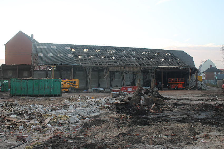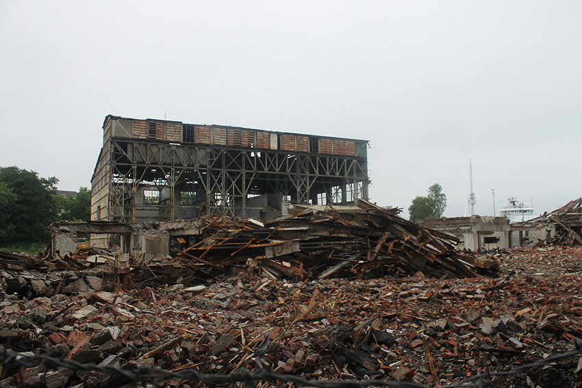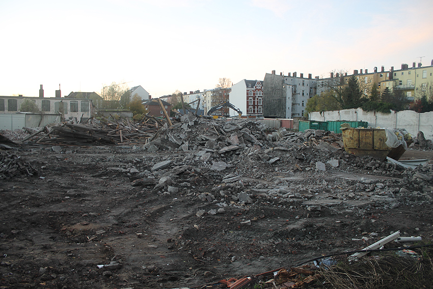 Südzentrale: Im Nachgang zu den gestrigen dramatischen Ereignissen bot sich uns auf der Rückbaustelle Südzentrale heute folgendes trauriges Bild. Die Reste der Wände der großen Maschinenhalle wurden beseitigt. Mittlerweile ist das Abrissgerät bereits mit Sortierarbeiten des angefallenen immensen Trümmer- und Metallschutts beschäftigt... Hier Offener Brief zum Abriss auf www.suedzentrale.de: Hier