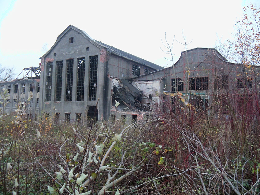 Südzentrale: Heute wurde unter anderem der Rest des Daches der großen Maschinenhalle zerstört. Dies geschah um einige Minuten vor 16 Uhr. Das charakteristische Erscheinungsbild der Südzentrale ist nunmehr endgültig Vergangenheit... Hier Heute in der Tagespresse: Südzentrale bald Geschichte