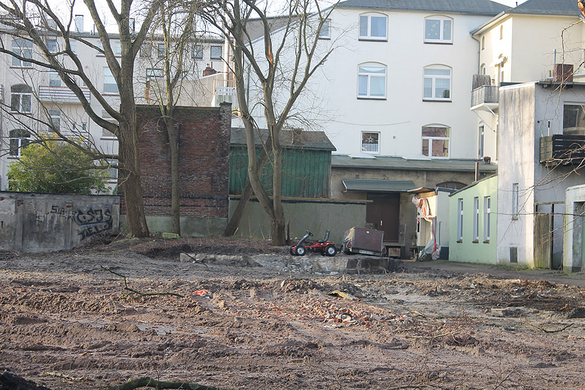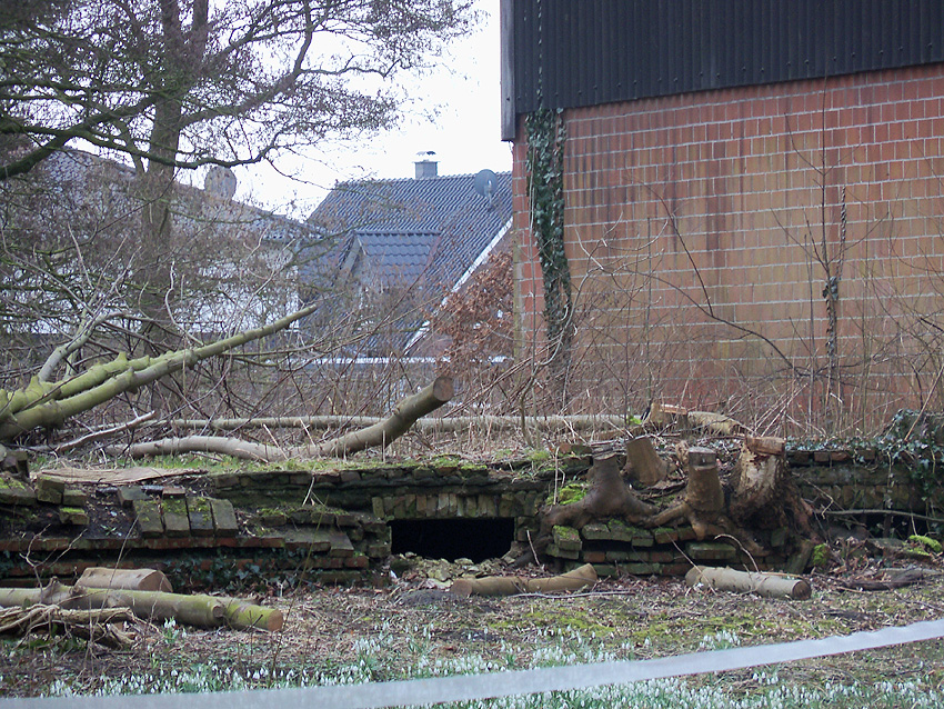 Am Deckungsgraben der ehemaligen Schule Neuende wird nun "gegraben". Vor dem alten, bereits umgebauten Schulgebäude entsteht Neubebauung. Der betonierte Deckungsgraben wird unangetastet bleiben. Hier