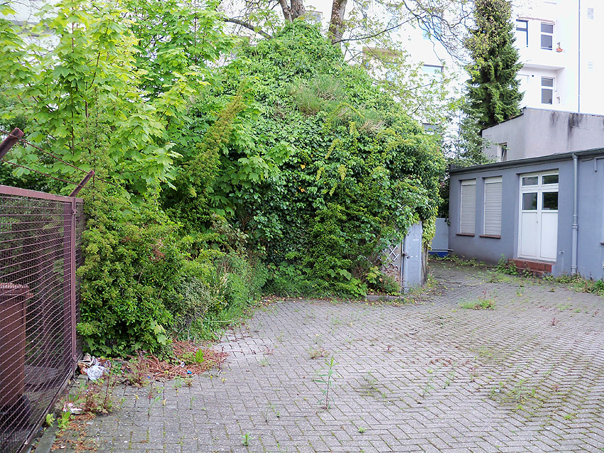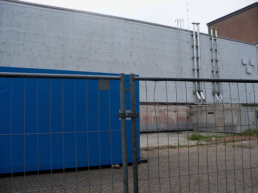 Virchowstraße: So sieht es heute auf dem Bunker aus. Mittlerweile ist der Überbau zweigeschossig... Hier Deichstraße / damaliges Marine-Materiallager: Der Abriss des kleinen Bunkers auf dem Gelände, das zuletzt von HBV genutzt wurde, ist noch immer nicht weitergeführt worden. Dies hängt damit zusammen, dass er die Nachkriegshalle darüber stützt. Ein Stahlträger wurde hierzu seinerzeit beim Hallenbau in das Bunkerdach eingebracht. Der Kleinbunker dürfte daher als letztes abgerissen werden. Hier