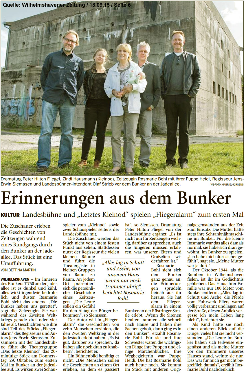 Heute erschien in der Wilhelmshavener Zeitung ein Artikel über das Theaterstück "Fliegeralarm", das ab Ende Oktober im T 750 Banter Ruine aufgeführt wird: