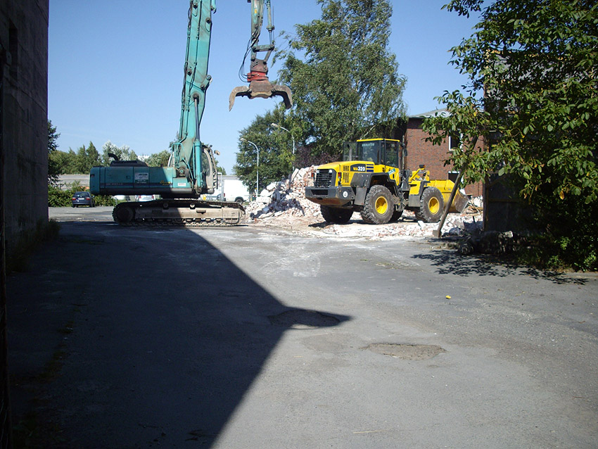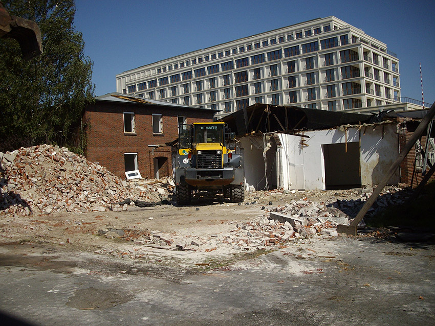 Banter Kaserne / erstes Gebäude (Baracke) östlich des T 750 1 Banter Ruine wird weiter abgerissen / Abrissbeginn auch am zweiten Gebäude nördlich der Baracke / 24.08.09