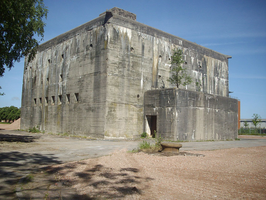 Dies war der Standort des Gebäudes Emsstraße 30 mit angebautem Kleinbunker... / heute Parkplatz für Kleingärtner