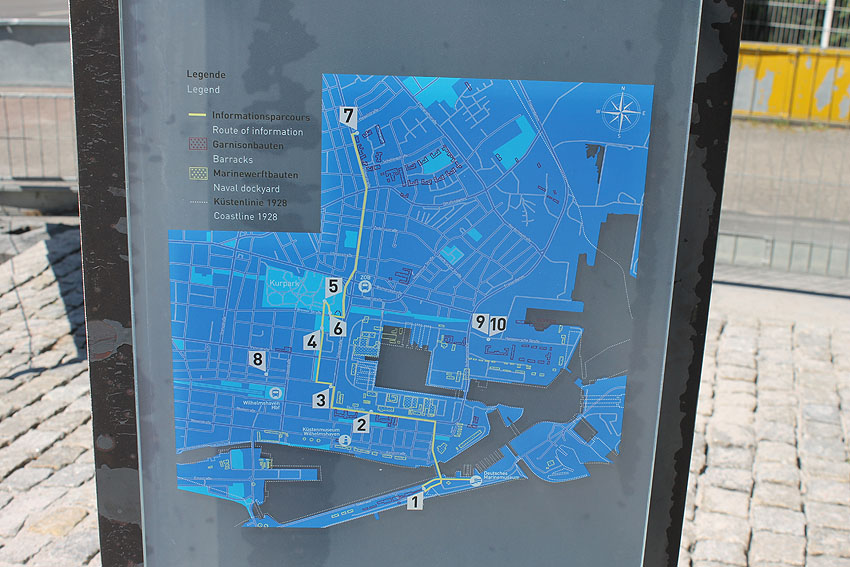 Nachtrag: 2019 wurden zum 150. Stadtgeburtstag zwei weitere Stelen (11/12) aufgestellt. Eine an der Christus- und Garnisonkirche, eine an der ehemaligen 2. Einfahrt (reell 1. Einfahrt).