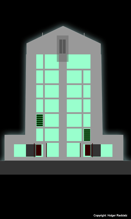 Der Standort heute. Das helle Gebäude steht direkt auf dem Bunkerfundamentbereich.