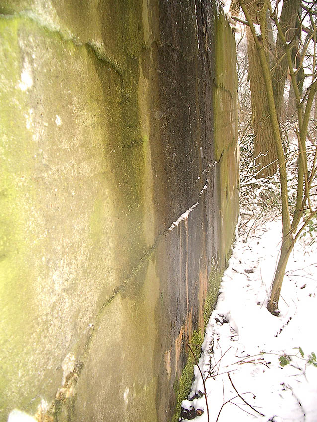 Die Außenwände des Bunkers sind teilweise mit Spritzputz überdeckt...