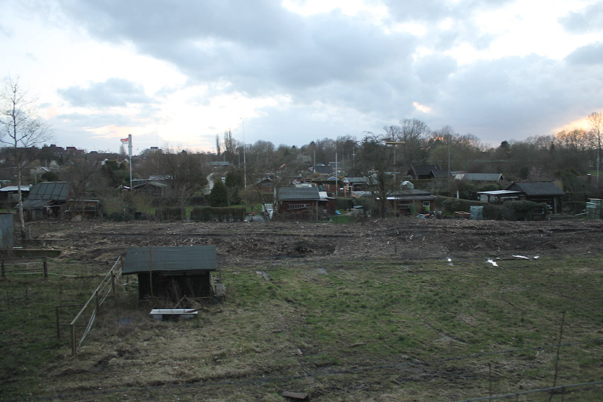 Westlich des alten Seedeiches wurde gerodet. Man erkennt den Damm des Schienenstranges im Bereich des alten Verladebahnhofes.