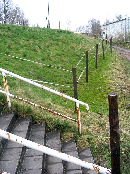 Hier zu sehen der Aufgang zum Bereich der ehemaligen Rüstringer Strandhalle. Der Herzbruchstollen "Mausefalle" befand sich in dem Deichstück im Hintergrund. Die genaue Lage ist jedoch unklar. Nach seiner Entfernung wurde der Deich neu angeböscht. Noch heute ist die hierdurch entstandene Ausbuchtung im Deich vorhanden.