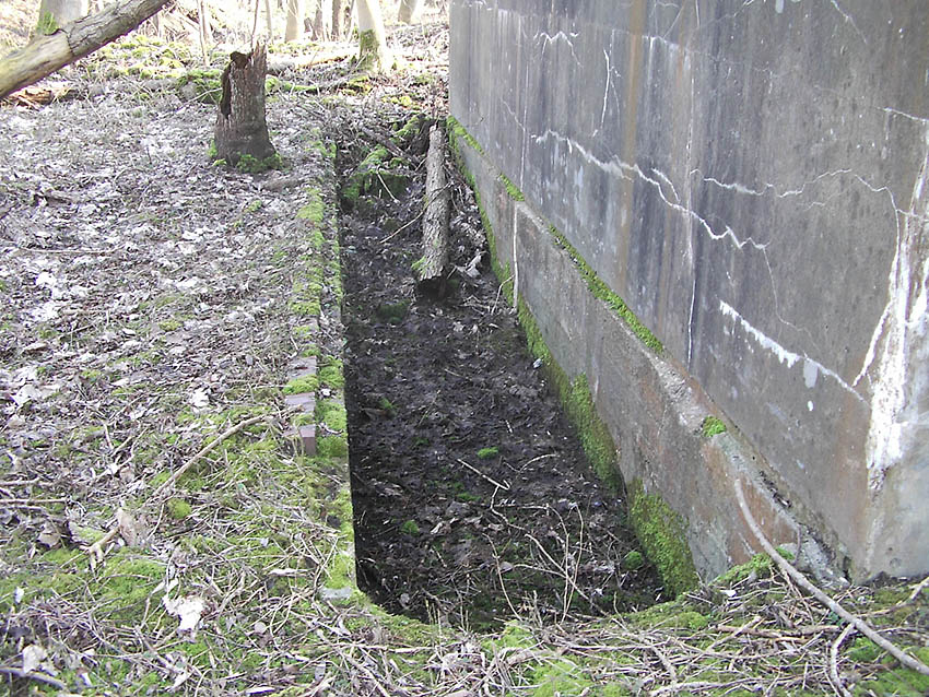 Die Bauform des Bunkers ist nicht mit den anderen Anlagen vergleichbar. Bis auf Widerruf gehen wir jedoch von Munitionslagerungszwecken aus. Eventuell könnte das Bauwerk aber auch ein verbunkertes Löschwasserbecken gewesen sein.