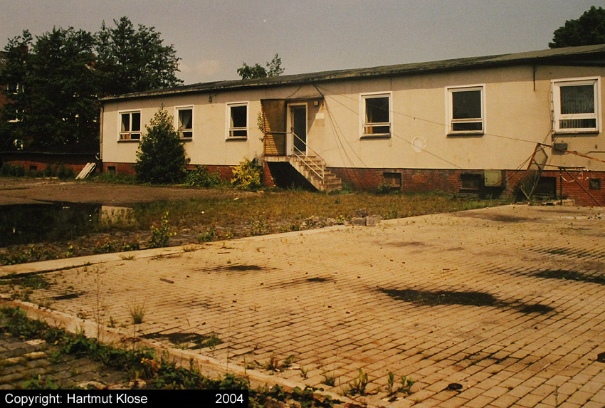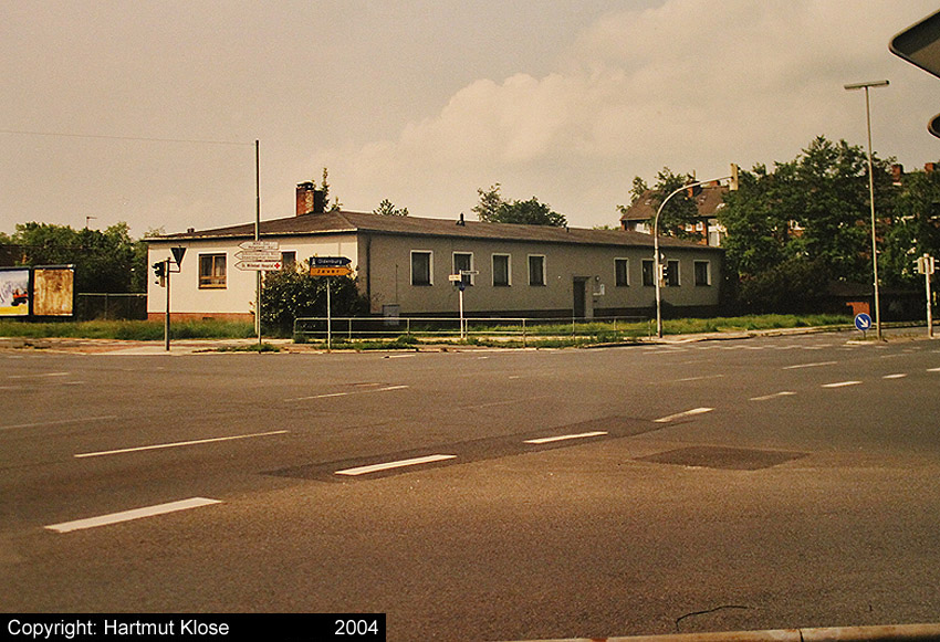 Folgende Bilder: Am Behelfsbunker war im dortigen Gebäude bis kurz nach der Jahrtausendwende der Wilhelmshavener Zivilschutz / Katastrophenschutz ansässig. Der nahe Hochbunker Genossenschaftsstraße wurde zeitweise für Übungen genutzt. Bemerkenswert ist die Haube auf dem Schornstein. Eventuell stammt diese von einer Sirene (jedoch wohl nicht vom Typ E57). Das Gebäude samt Behelfs-Schutzbau wurde 2005 abgerissen. Heute ist hier ein Supermarkt samt Parkplatz.