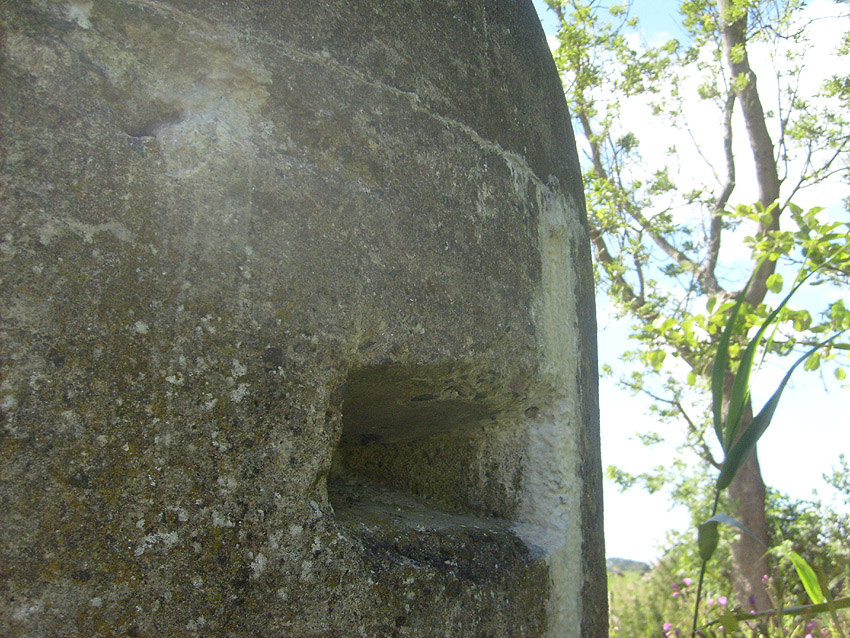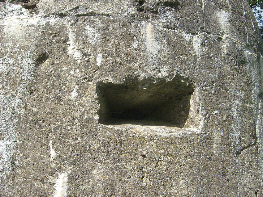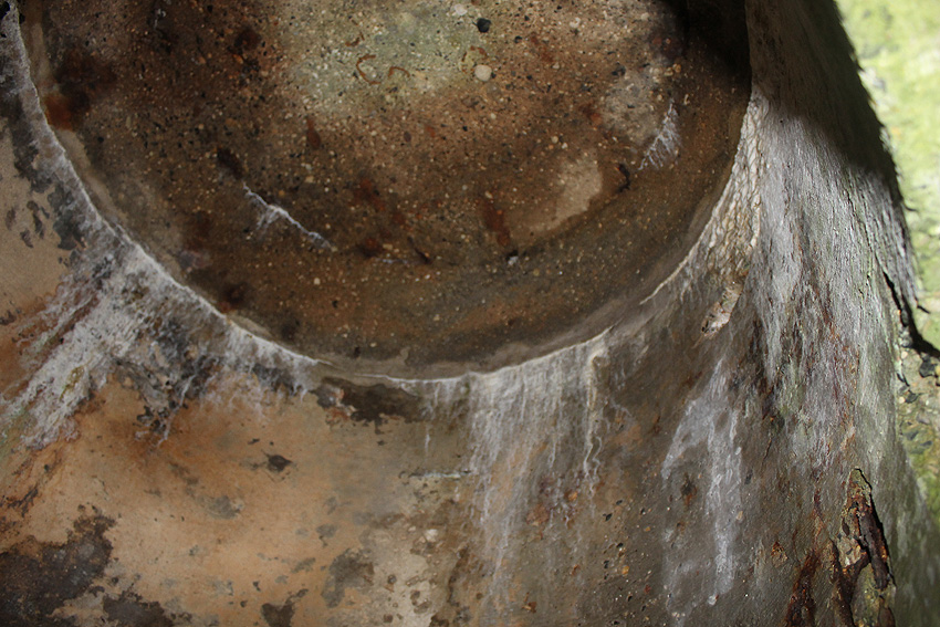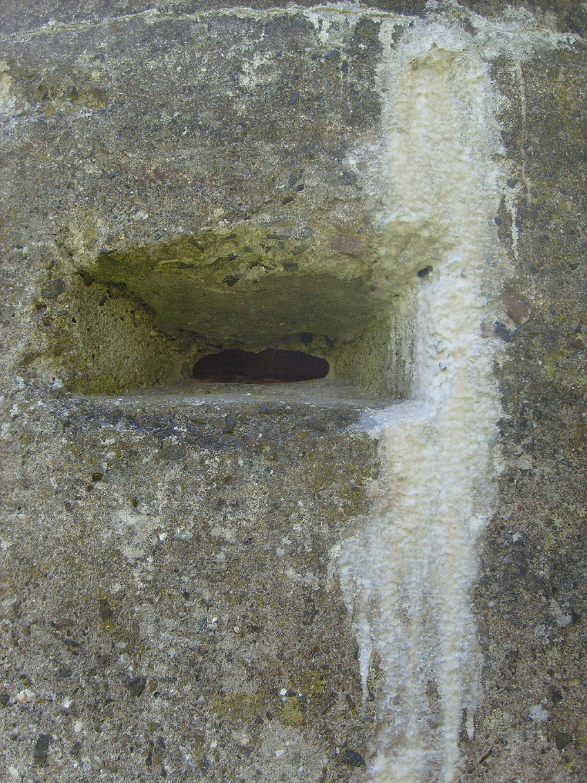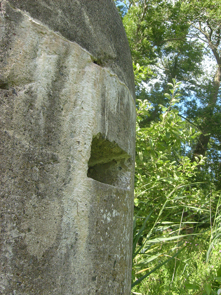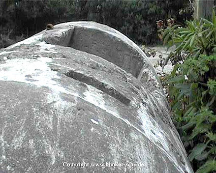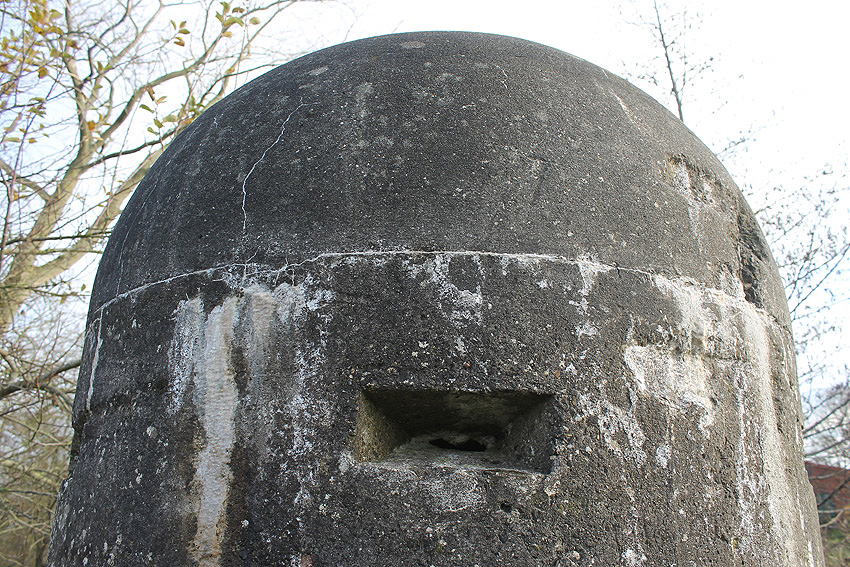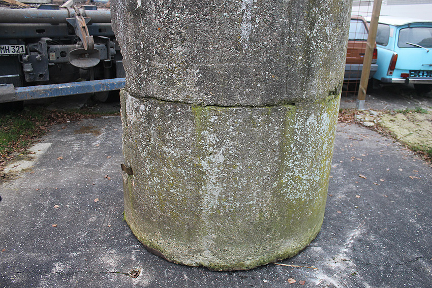 Neuester Stand: Wahrscheinlich keine Westermann-Zelle, sondern Splitterschutzzelle Fabrikat Klöckner / Klöckner-Stahlwerk Osnabrück / gefertigt im Zementwerk Piesberg / kleine Bauform / 25 cm Wandstärke / RL 3-43/41