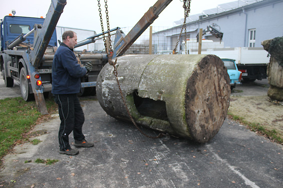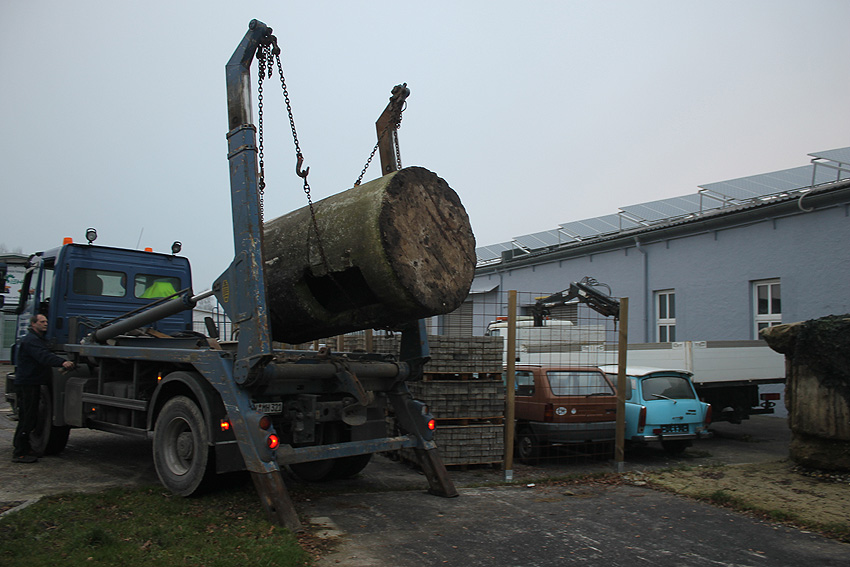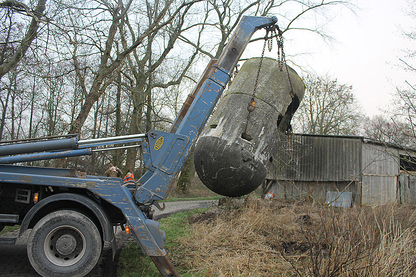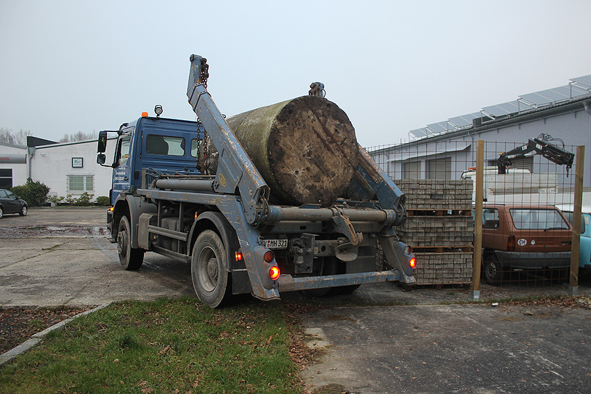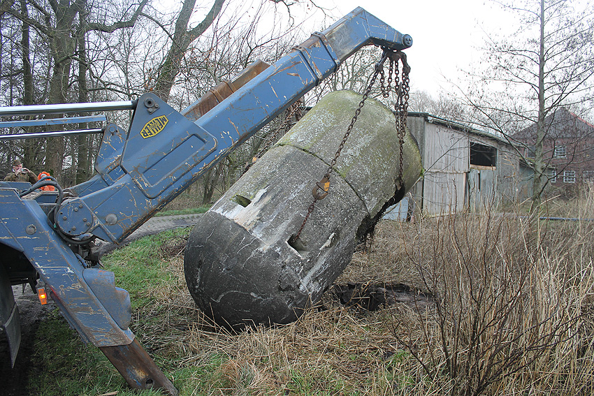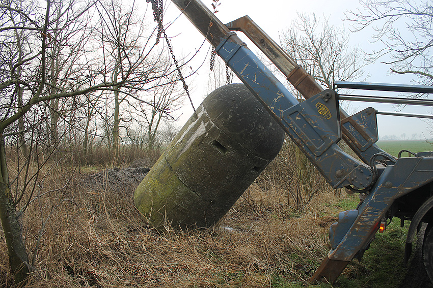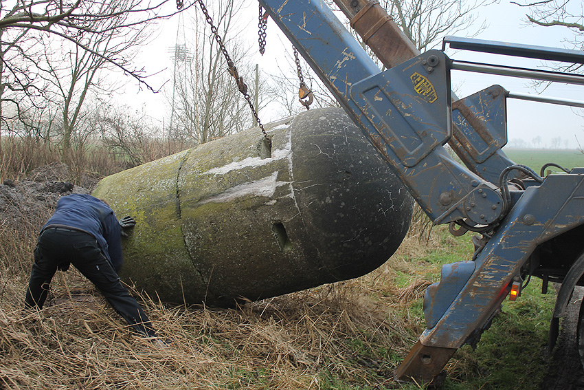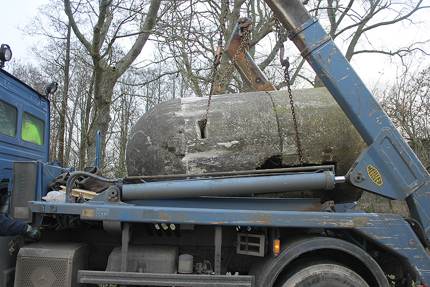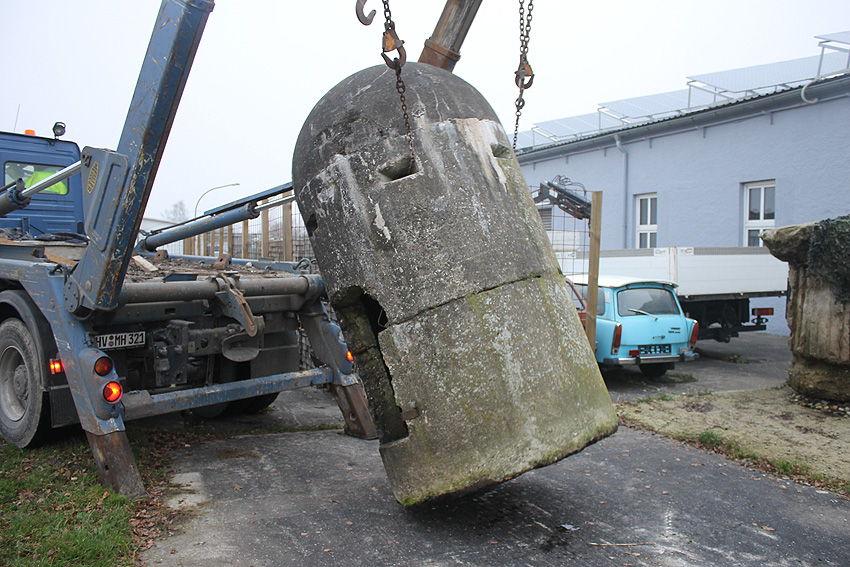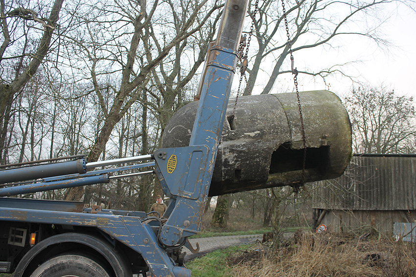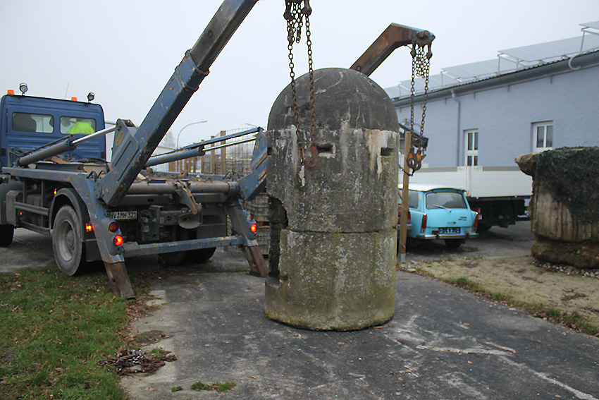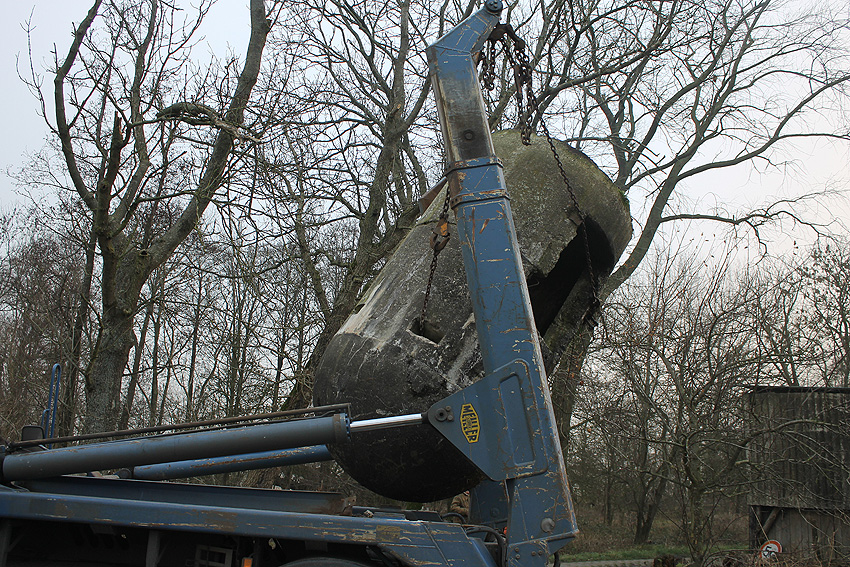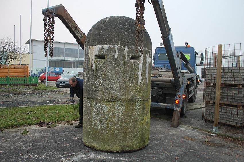 11. Dezember 2013: Heute wurde die Splitterschutzzelle nach Wilhelmshaven zum Kanalweg rückgeführt.