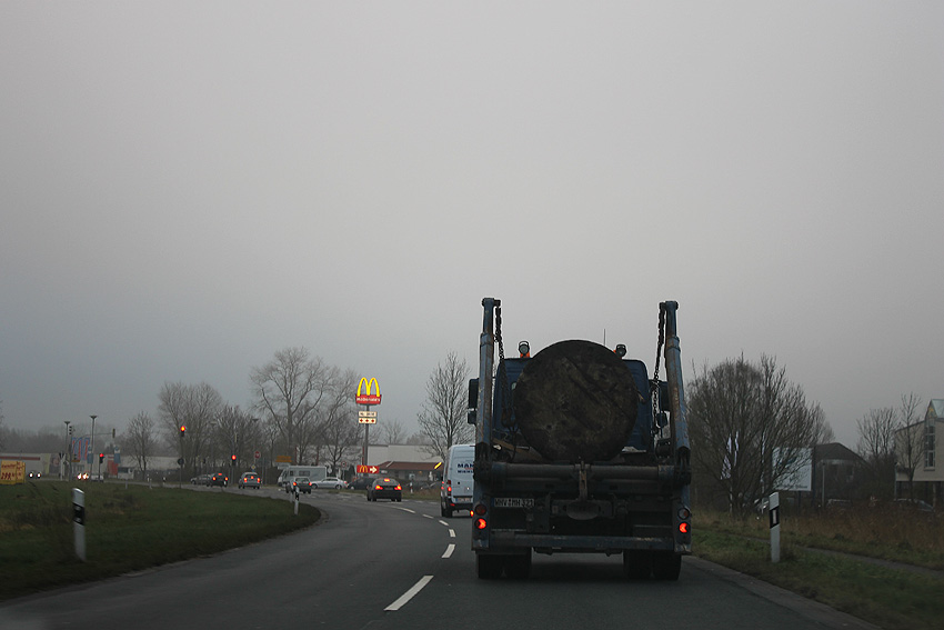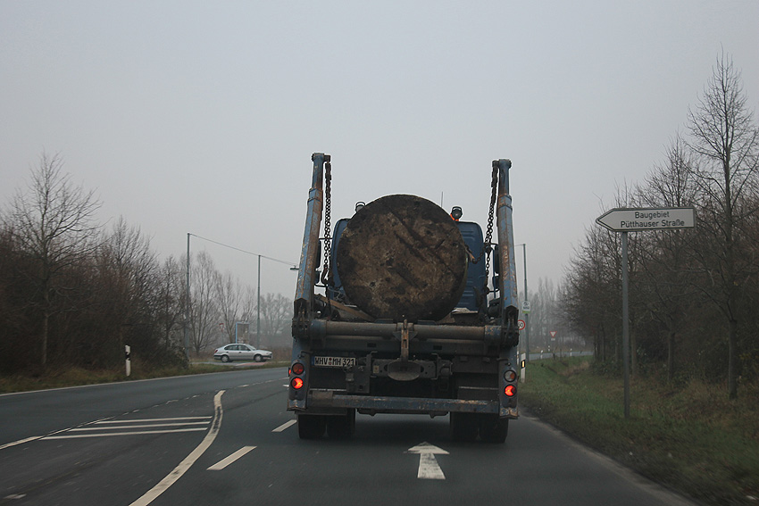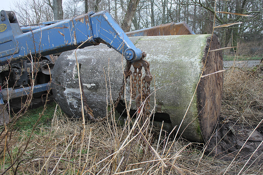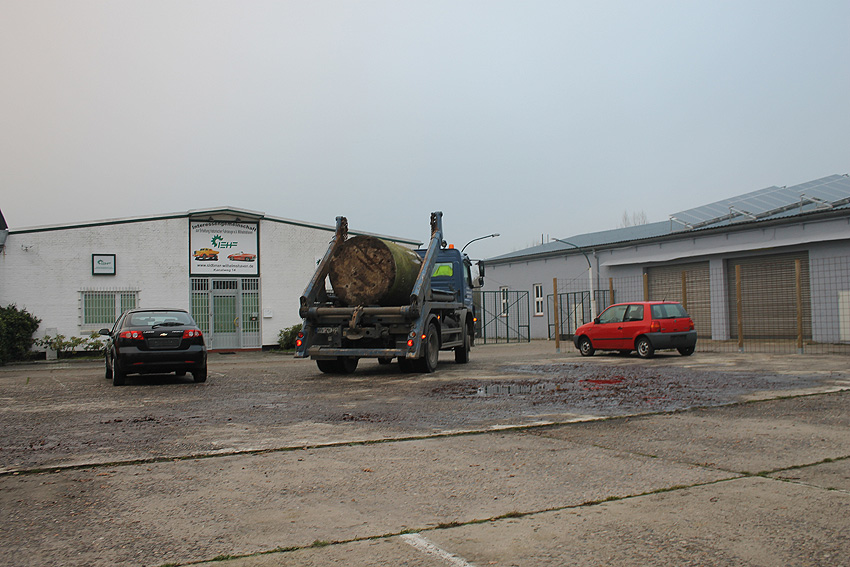 11.12.13: Heute - an einem Datum, das nur alle 100 Jahre vorkommt - wurde es vollbracht: Nach 10 Jahren "Aufenthalt" im Wangerland (Klein Rhaude) wurde nun die Splitterschutzzelle, welche bis 2003 an der Planckstraße in Wilhelmshaven stand, zurück in ihre Stadt geführt. Nicht einmal einen Kilometer entfernt vom Ursprungsstandort hat sie nun ihren Platz als Relikt gefunden. Sie steht als mittlerweile zweiter Minibunker am Kanalweg 15 bei der Interessengemeinschaft zum Erhalt historischer Fahrzeuge.