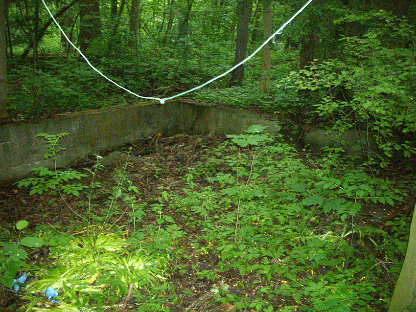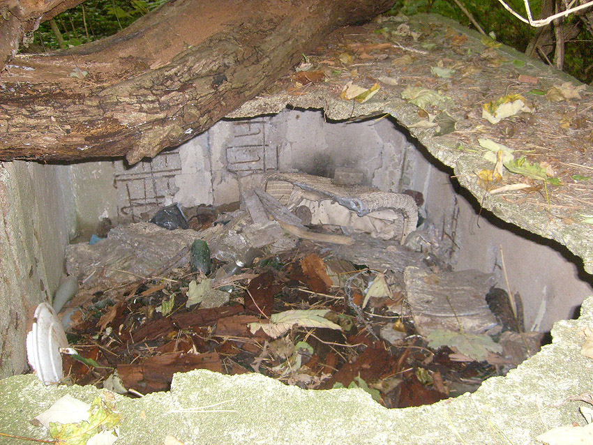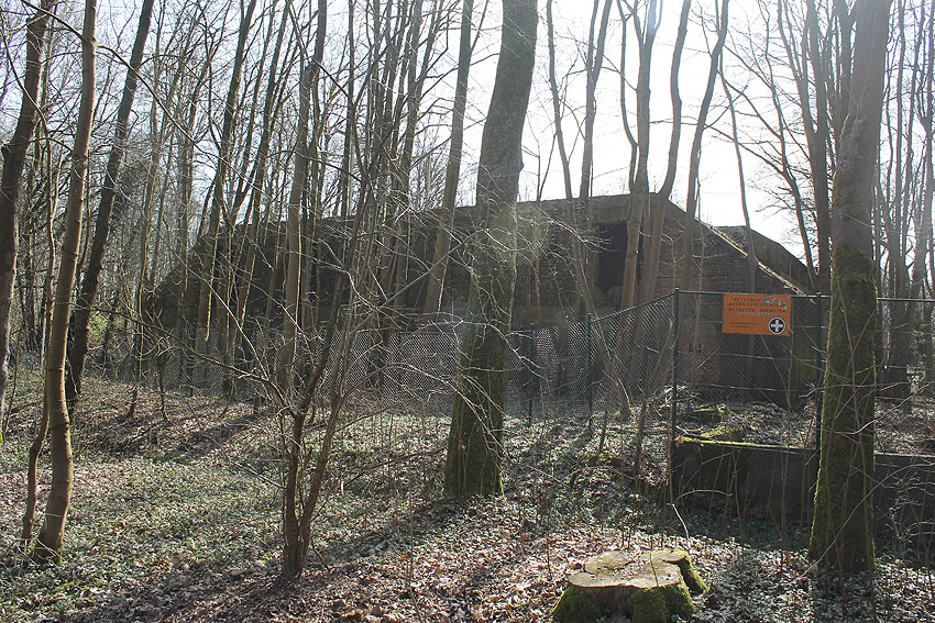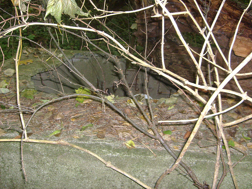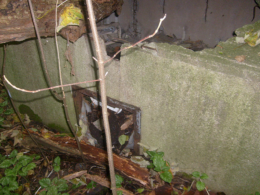 Drei alte Kanalschächte und eine teilzerstörte splittergeschützte Beton-Munitionslagerkiste im Nahbereich der ehemaligen Luftverteidigungszentrale: