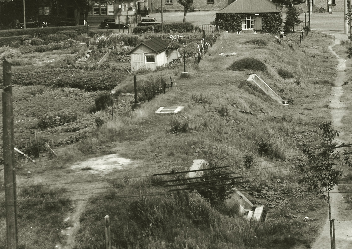 Herzbruchstollen Valoisplatz / Zu erkennen die drei Eingänge in das Bauwerk und die beiden Notausstiegsaufbauten mit insgesamt vier Ausstiegen, genau wie beim Herzbruchstollen Pflegeheim Banter Weg.