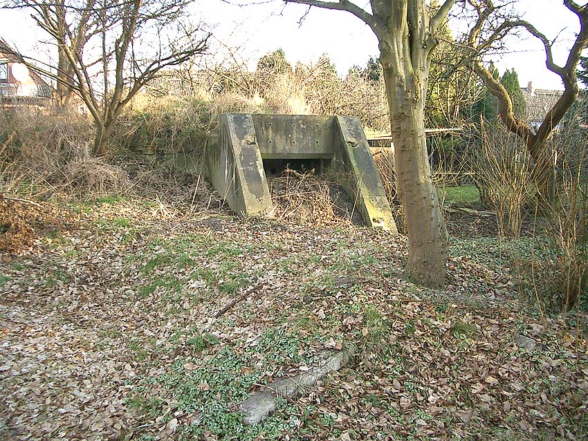 Am Tonndeichsweg in Wilhelmshaven existiert noch heute im überbauten Zustand ein Erdbunker. Eine weitere Quelle beschreibt diesen Bunker als Herzbruchstollen mit 60 Plätzen. Zumindest der auf dem Bild erkennbare Eingangsbereich sieht denen der Herzbruchstollen äußerst ähnlich. Wenn dies ein Herzbruchstollen ist, warum hat er dann keinen runden Bunkerkörper hinter dem Eingang? Der Verdachtsbunker besitzt nach unseren Erinnerungen zwei Eingänge und ist heute bis auf die oben erkennbare Außenwand nicht mehr einsehbar. Oder ist eventuell der Betonbereich hinten links, auf dem die hintere Wäschestange leicht abgesackt steht, der runde Bunkerkörper?