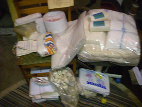Für den Ernstfall 1969 im Bunker eingelagert: Mullpäckchen, Windeln, Binden, Leichensäcke, Pflaster, Handtücher, Decken, Waschlappen und so weiter. Glücklicherweise wurden diese Materialien nie gebraucht.
