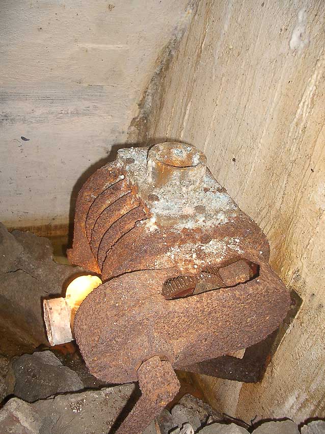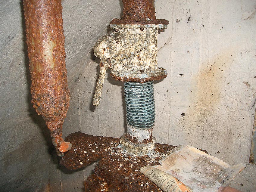 Die Luftfilterungsanlage ist erstaunlich komplett erhalten. Auch steht insgesamt weniger Wasser im Bunker als vermutet. Dies hängt damit zusammen, dass die Anlage weniger weit unter Erdgleiche liegt als zunächst vermutet...