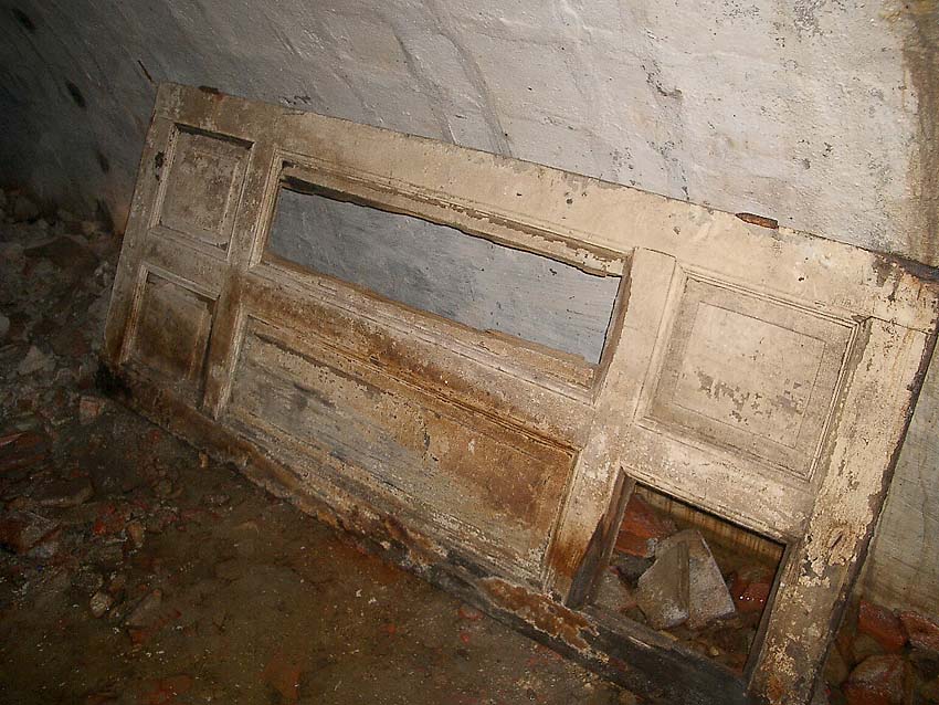 Die Aborte. Im Gegensatz zum Ostbunkerkörper ist hier über den Türen eine gemauerte Wand bis zur Decke vorzufinden. Die Trennwand jedoch wurde nachträglich weggebrochen...