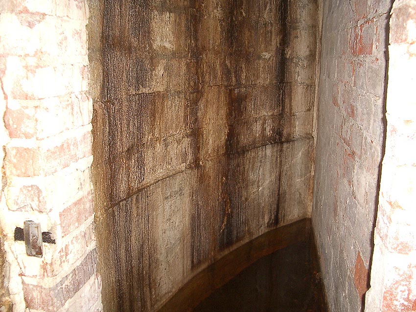 Die Luft war während unserer Begehung kalt, abgestanden und extrem stickig. Seit Jahrzehnten herrscht keinerlei Luftzirkulation in dem Bauwerk. Das Wasser im Stollen ist tot. Nicht einmal Ratten trafen wir an... Zum Glück.