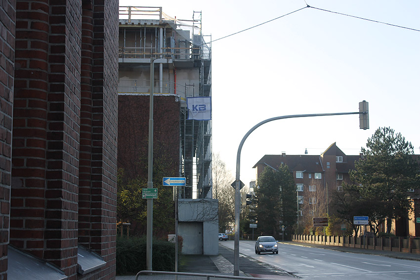 Am Hochbunker Virchowstraße sieht die Szenerie von Nordwesten heute derart aus. Wann dort die Fertigstellung des Überbaues erfolgt, ist noch immer unklar.